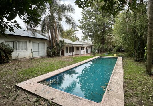 Amplio parque con pileta. Entrada vehicular.